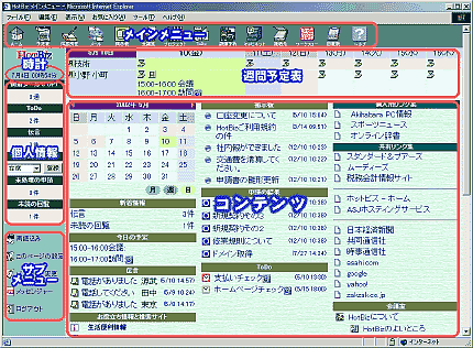 生活便利情報、インターネット便利情報、ビジネス便利情報のリンク集を標準で用意しています。お役立ちリンク内容は変更できません。表示する/しないのみの変更となります。[このページの設定]−[お役立ちリンクの設定]で変更します。 |